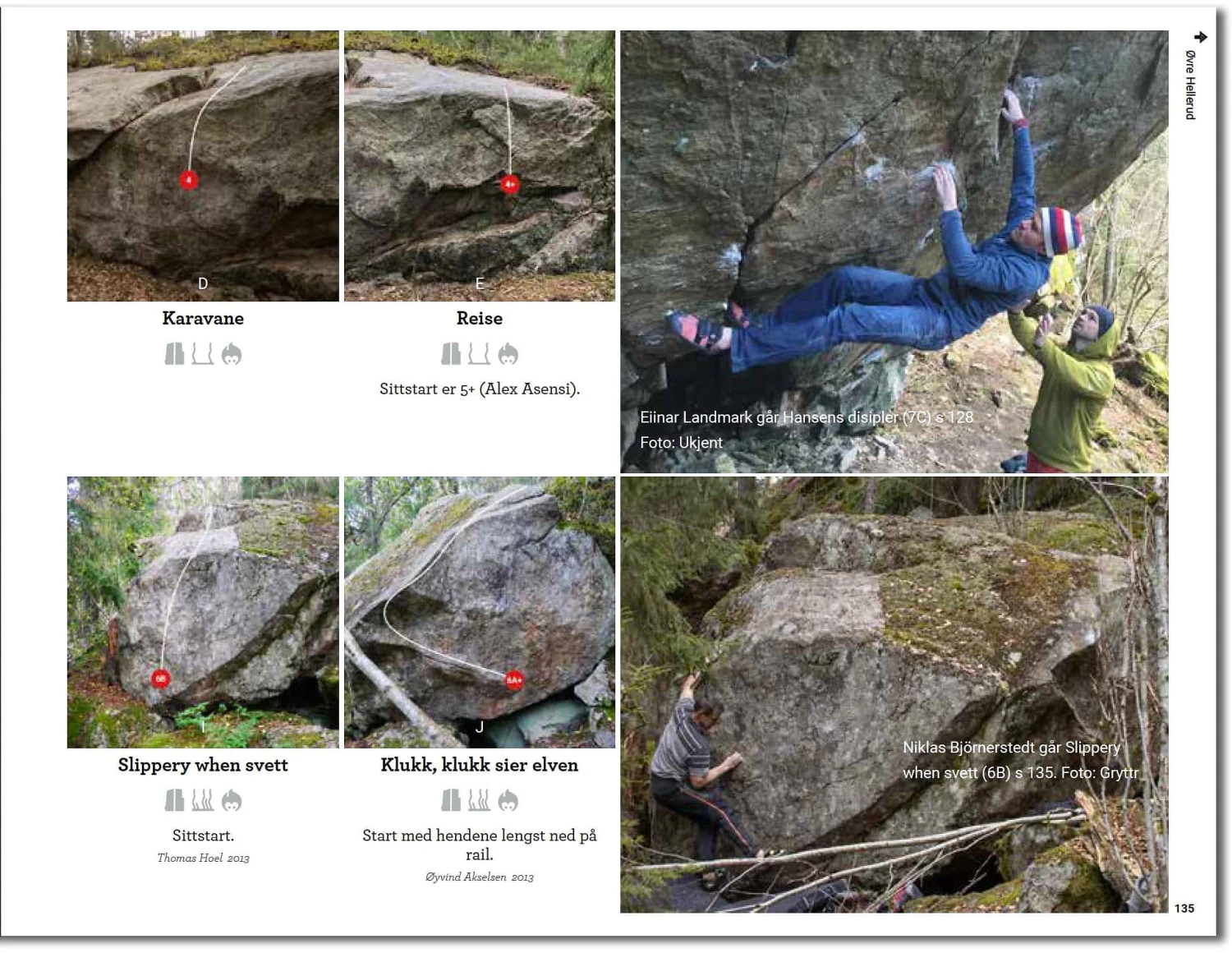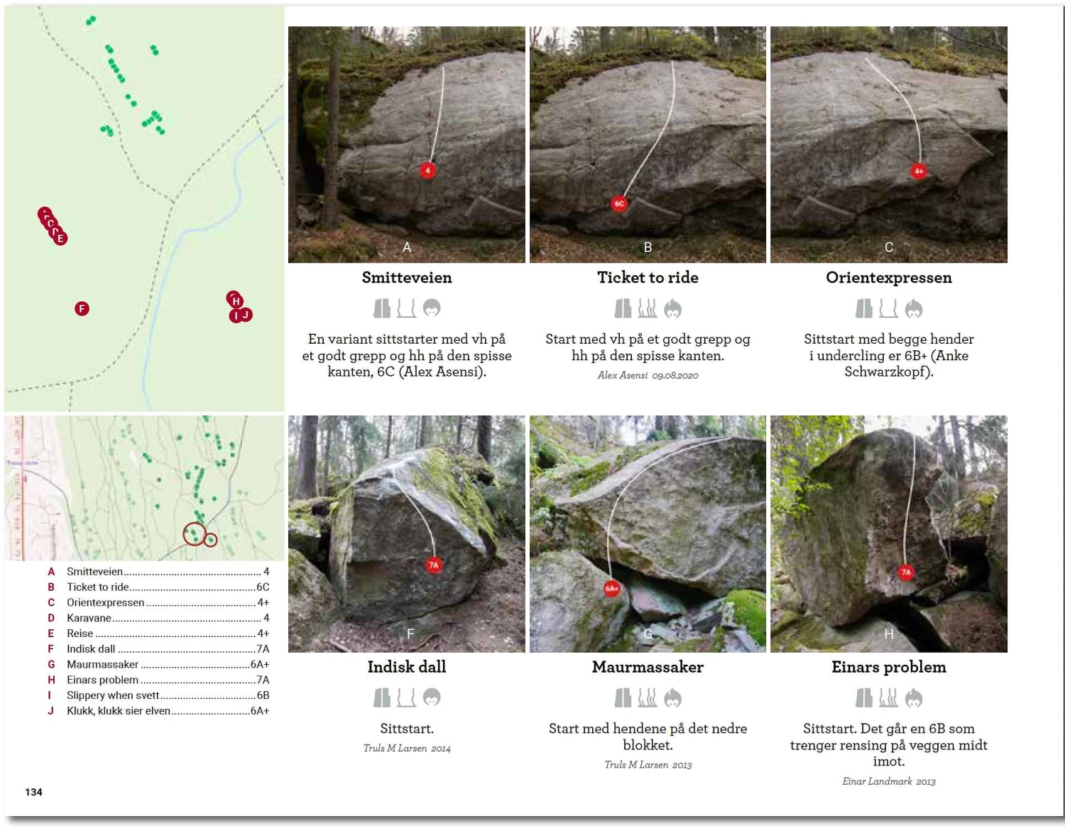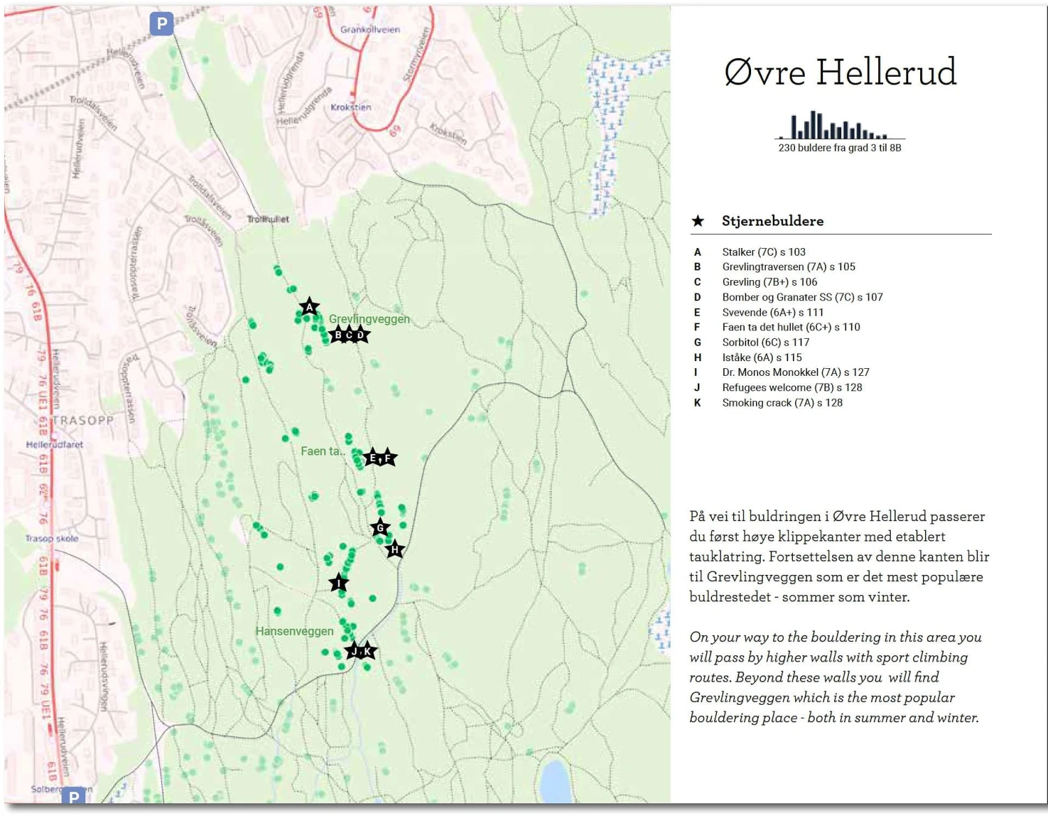 I og rundt Østmarka i randsonen av byen fra Hellerud til Skullerud har mest buldring med over 1500 problemer, hvorav 500 har kommet til de siste årene. De andre områdene har rundt 500, så i føreren er det 2000 buldere på 384 tettpakkede sider. Vertikalt anbefalt av Sportsnett!