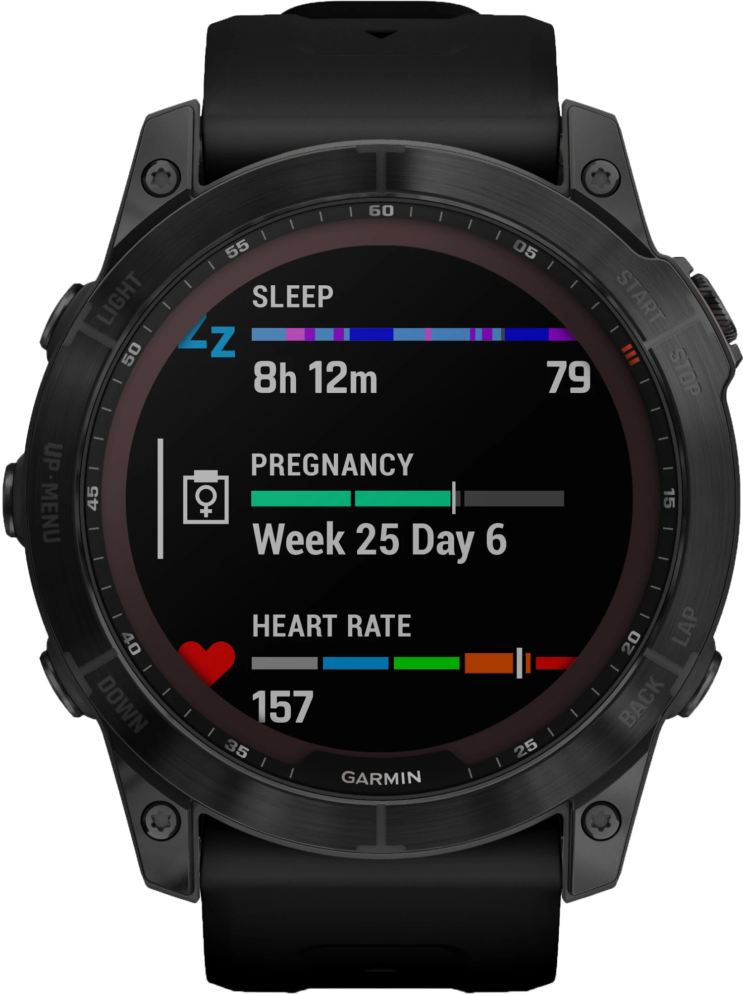 Avansert treningsstatus, løps-/sykkeldynamikk og omgivelsesjusterte kondisjonsberegninger er lett tilgjengelig. I tillegg vil PacePro-funksjonen, som er den første i sitt slag, gi deg høydejustert tempoveiledning under løpeturen. Få ny innsikt i utviklingen av utholdenhetsytelsen din over tid, og optimaliser restitusjonen ved å overvåke hjertefrekvens, respirasjon, stress, og søvn.