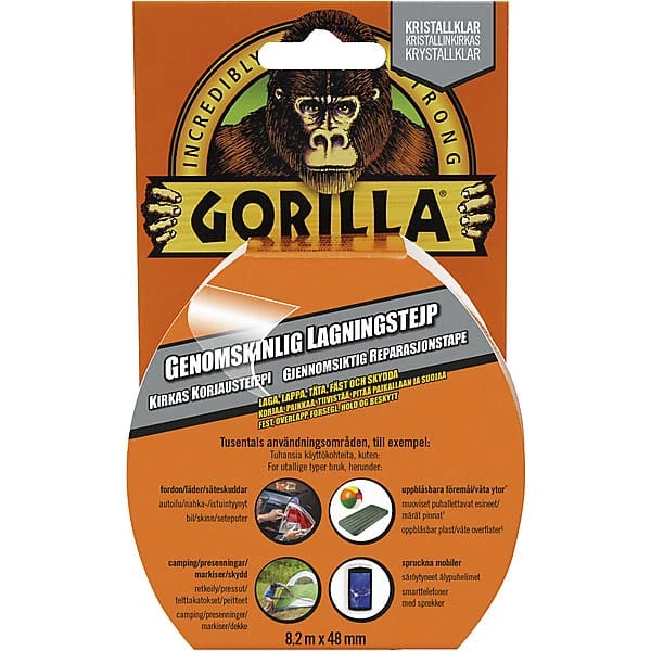 Gjennomsiktig utgave av tapen, supert til å lappe telt, liggeunderlag og andre ting der du vil ha en diskret fix. Svært slitesterk tape som hefter usedvanlig godt mot rue og vanskelige overflater der vanlig tape ikke fungerer. Kan brukes til å fikse så og si alt, derfor bør du alltid ha litt på lur…