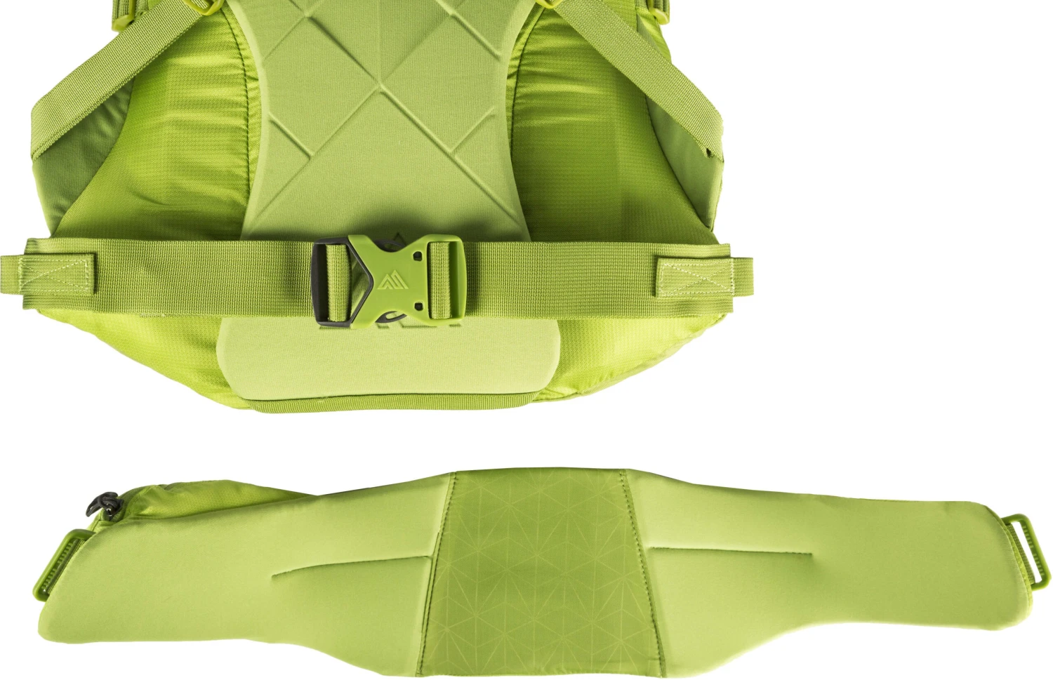 - Enkel fjerning av ryggspiler, ramme, bivypad, og padding på hoftebeltet gjør sekken 500 gram lettere