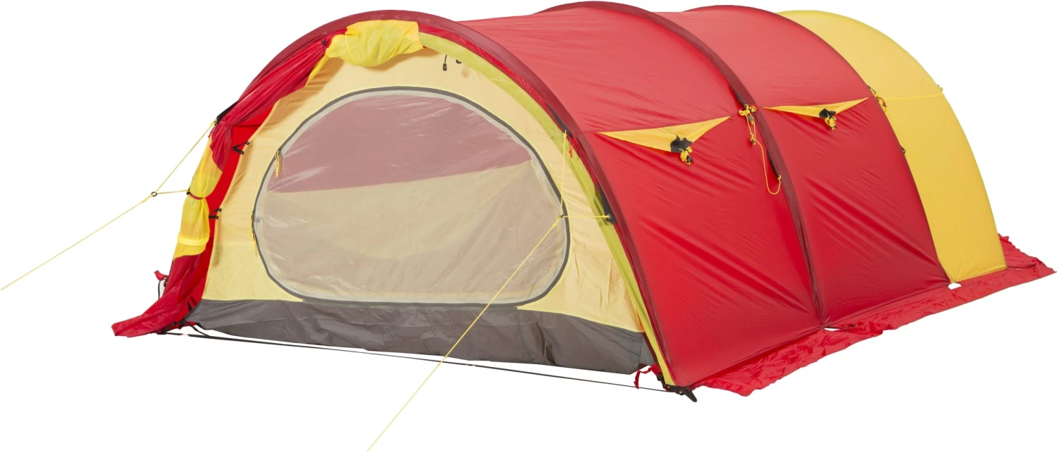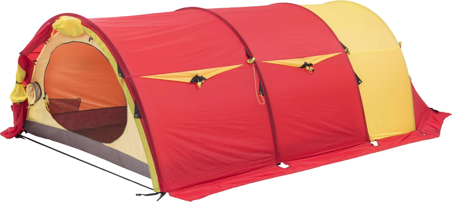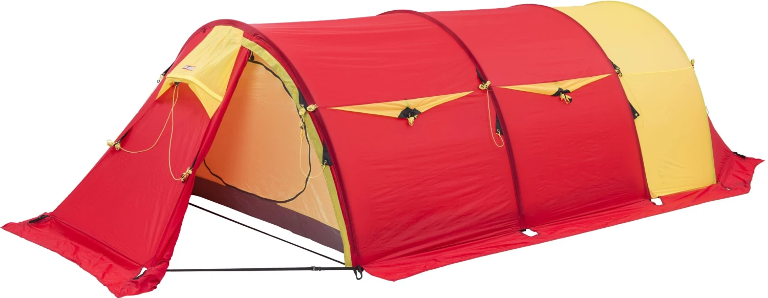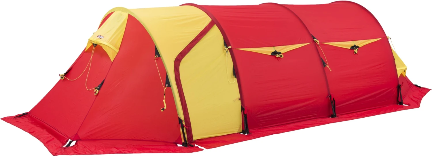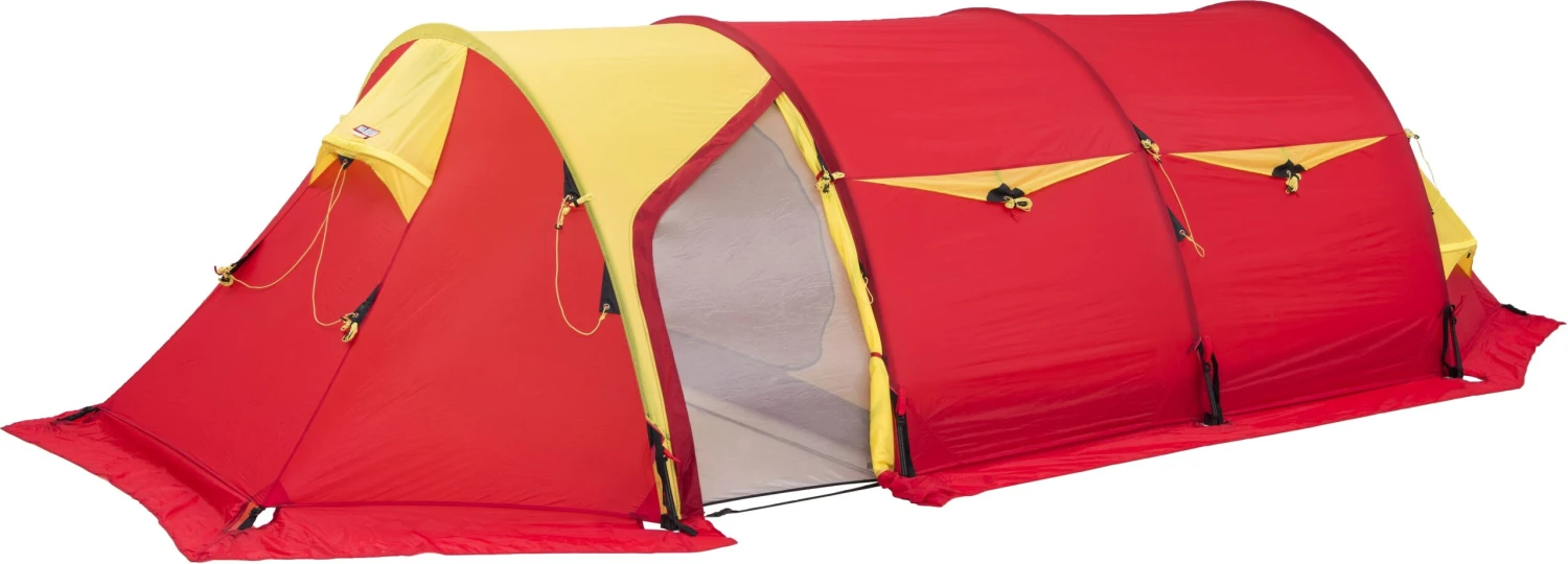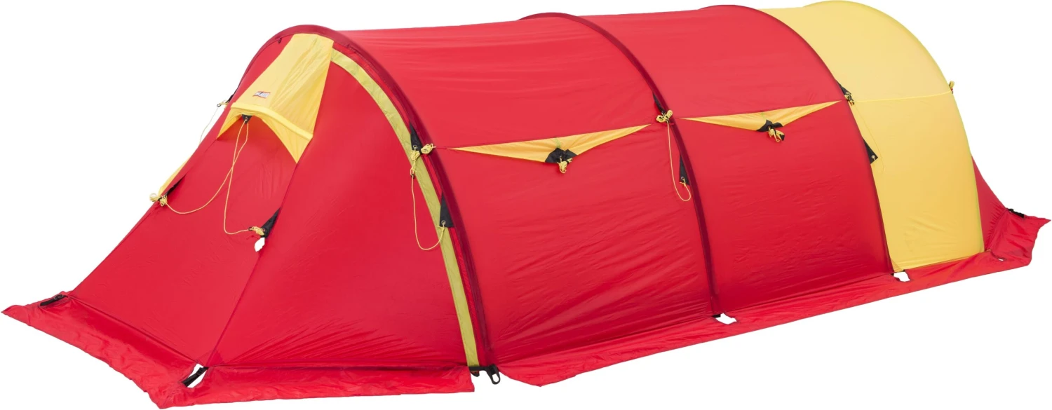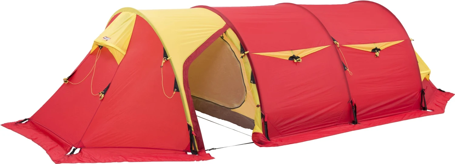 Stort tunneltelt for tre personer som er den perfekte partneren for lange turer med pulk. Med fire like stenger er det raskt og enkelt å sette opp, samtidig som det gir god takhøyde og liggebredde i hele teltet, noe som er sært verdifult på turer der man bruker mye tid i teltet. Med to innganger og to fortelt sikrer du at en inngang alltid er i ly for vinden. Det gir også fleksibilitet til å eksempelvis oppbevare bagasje ett sted og lage mat et annet. Det store forteltet kan også brukes som et ekstra rom om man trenger litt privatliv.