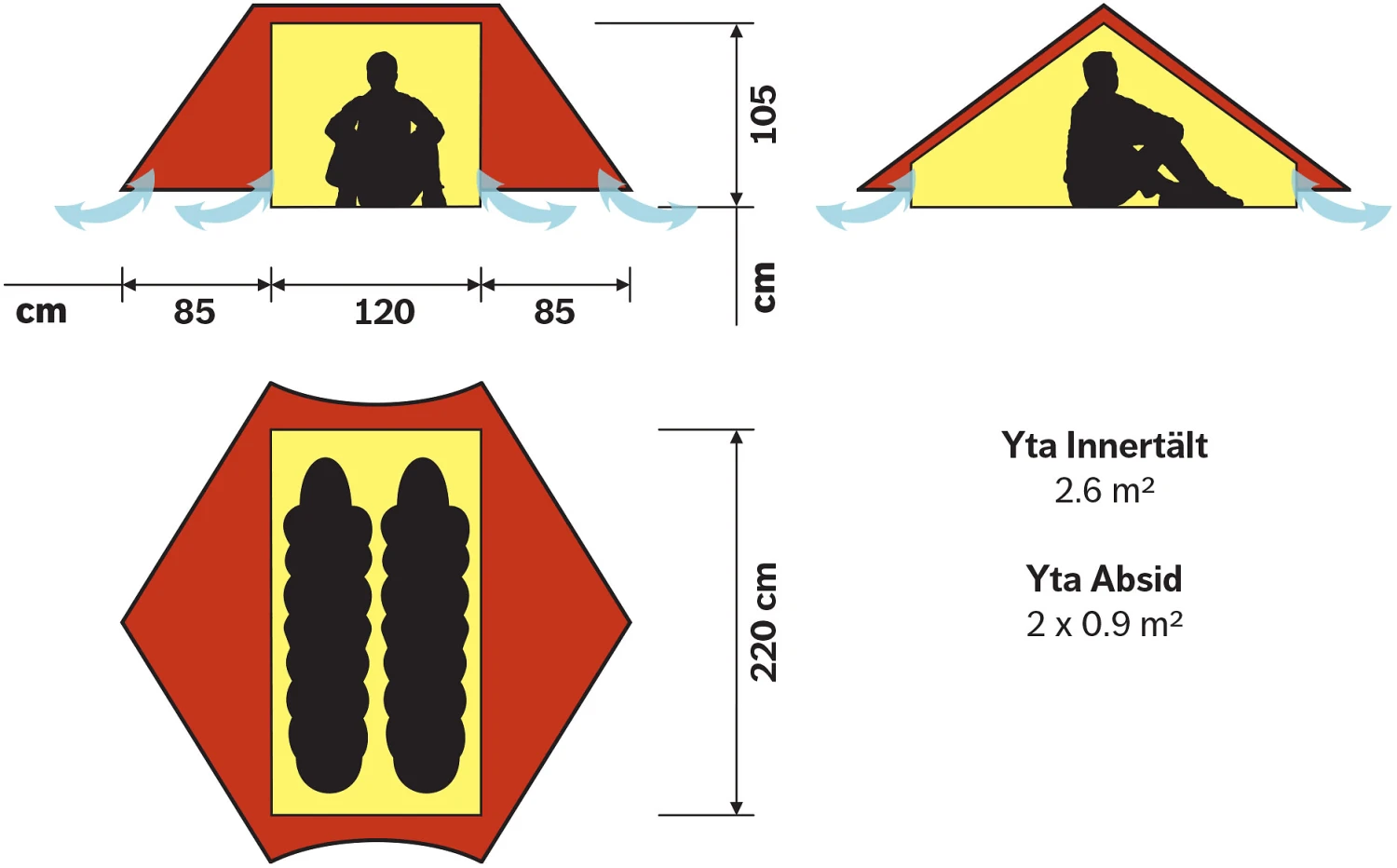 Du kan enkelt rulle opp ytterduken for å gi masse luftgjennomstrømming i varmt vær, eller bruke bare ytterteltet som en avansert tarp på turer der du sparer på hvert gram. Innerteltet er laget i finmåsket netting på hver av sidene, i tillegg til at teltduk har avstand fra bakken for å gi god ventilasjon.