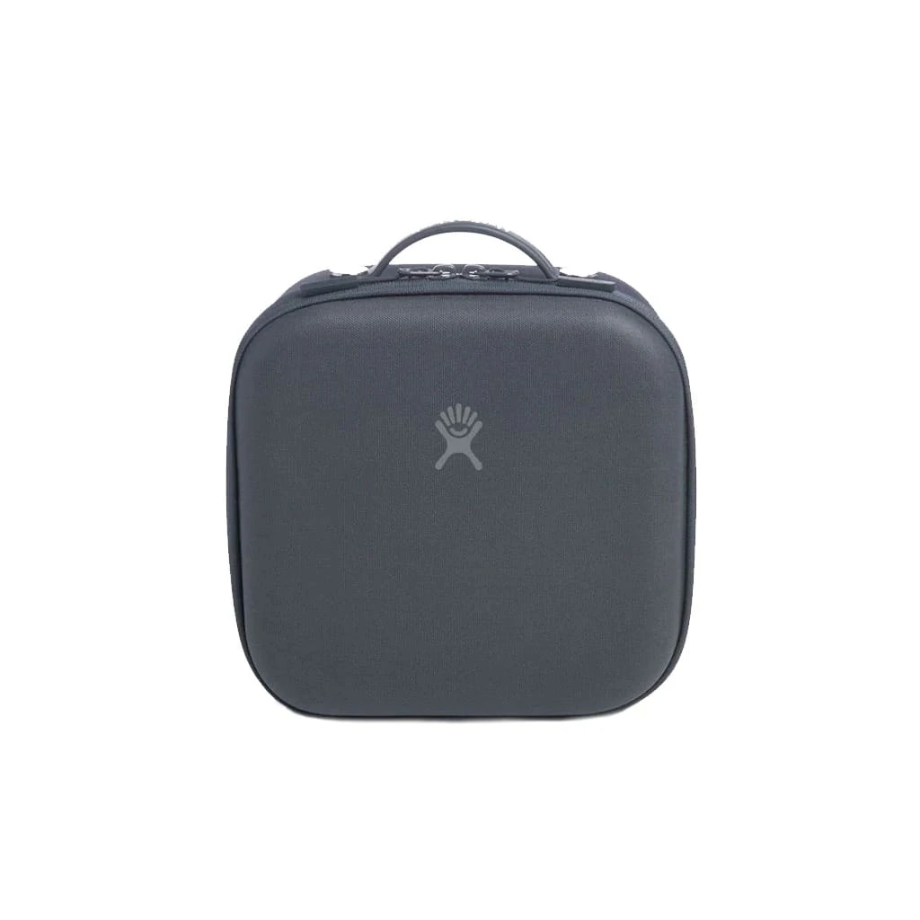 Lunsjboksen med praktisk nettinglomme på innsiden til bestikk og servietter. Yttersiden er dekket i slitesterkt stoff, med håndtak og glidelås.