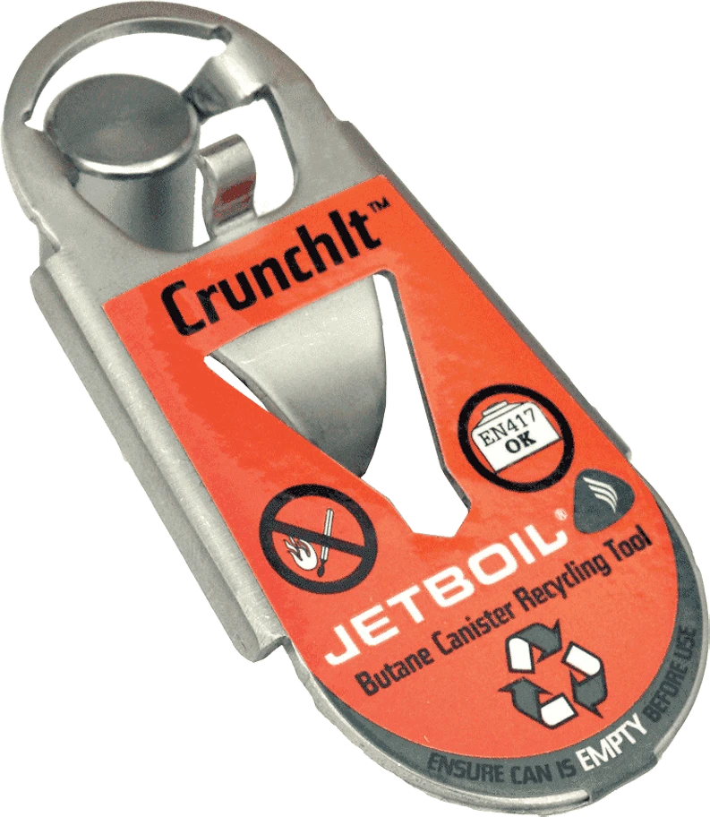 Gassboksåpner som punkterer brukte gassbokser før du hiver dem til resirkulering.