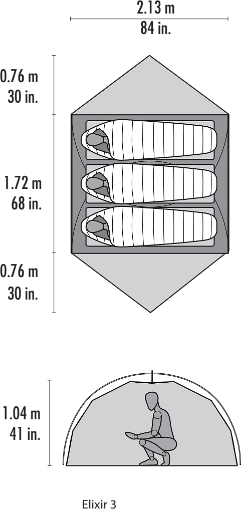 Elixir-serien til MSR er enkle å sette opp, har svært lav vekt og er komfortable nok til å bo i mange dager sammenhengende. Det har god høyde og bratte vegger, noe som gir mye plass du kan oppholde deg på. God ventilasjon gjør at du kan unngå kondens. Innerteltet i mesh kan brukes for seg selv på varme dager, eller så kan du også bare bruke ytterteltet og en medfølgende, ekstra bunnduk for å gjøre sekken lettest mulig på raske turer. Store innganger til både fortelt og innertelt.