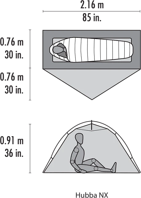 - Unik stangkonstruksjonen med ledd som slår ut som ‘ben’ i nedkant av kortendene og en kort ‘hjelpestang’ som øker det indre volumet i både inner- og ytterteltet