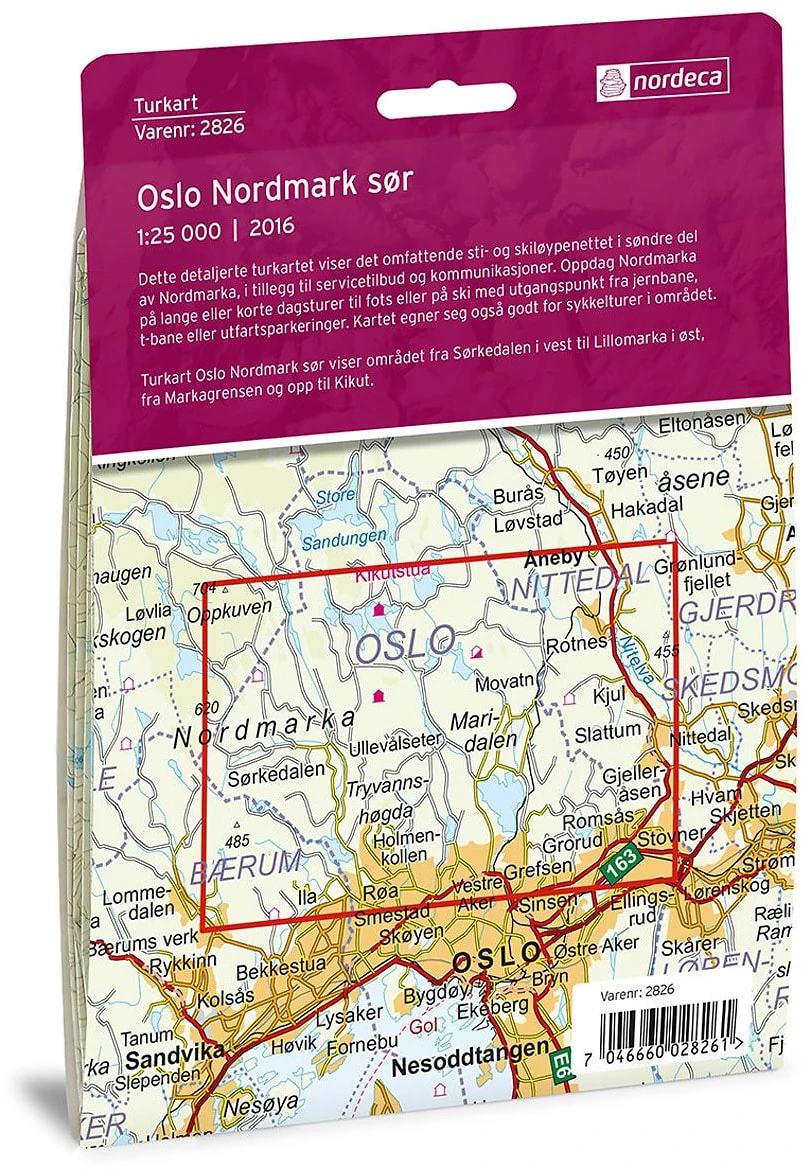 Oslo Nordmark sør er et kart med målene 1:25 000. Kartet dekker kjente områder som Nittedal, Oslo, Rotnes, Holmenkollen og Slattum.
