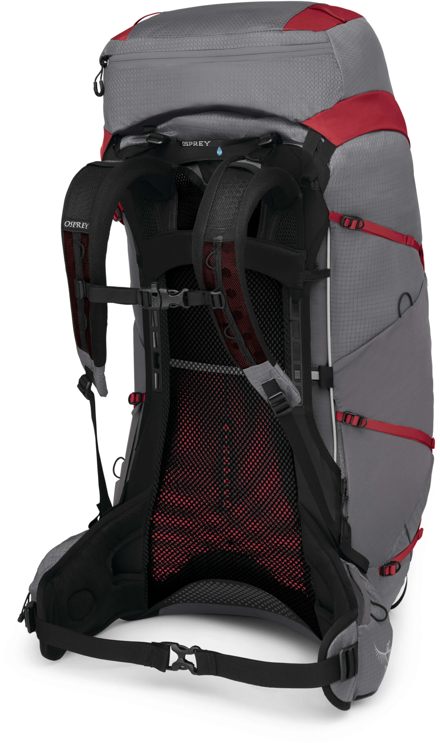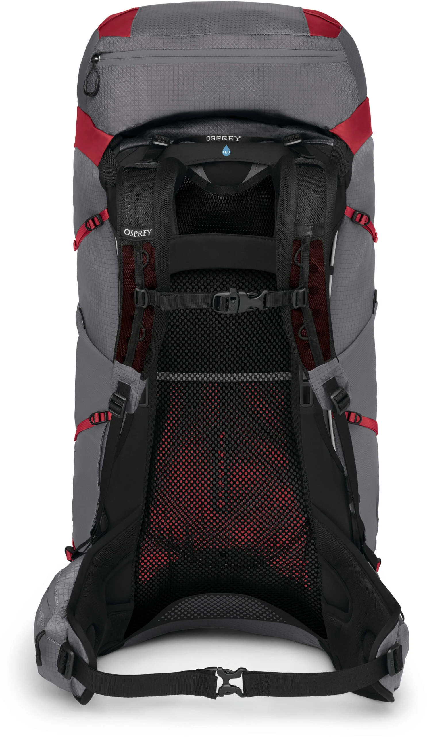 - Innvendig drikkelomme med sentrert slangeåpning på baksiden og Osprey Hydraclip for enklere opphenging av drikkeblæren