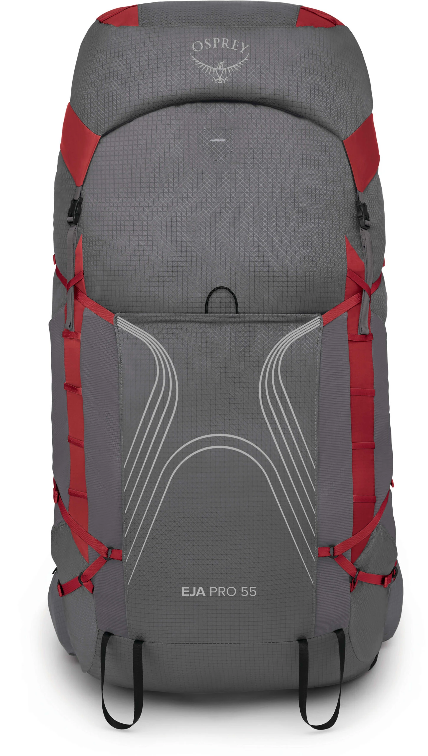 - Stor kompresjonslomme i stoff foran med elastiske sidepaneler som rommer det som ikke får plass inni sekken